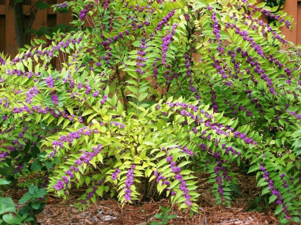 Плоды: Красно-фиолетовые глянцевые ягоды диаметром до 4 мм появляются в большом количестве, очень декоративны.