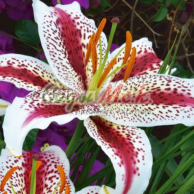 Луковицы лилии восточной Астериан (Lilium oriental hybrids Asterian) — это лучший вариант для выращивания под срез. На одном стебле одновременно распускается несколько цветов, по 15 см в диаметре. Они окрашены в классический белый цвет с яркими оранжевыми пыльниками. Лепестки очень долго не осыпаются, поэтому букеты отлично переносят хранение и транспортировку. Выращивать лилию Астериан можно в теплице или в открытом грунте. Цветам не страшны заморозки (под укрытием) и прямые солнечные лучи. Если выбрать подходящее место под посадку и периодически вносить минеральные удобрения, Лилия восточная Астериан может оставаться на одном месте до 5 лет без пересадки и ежегодно цвести.