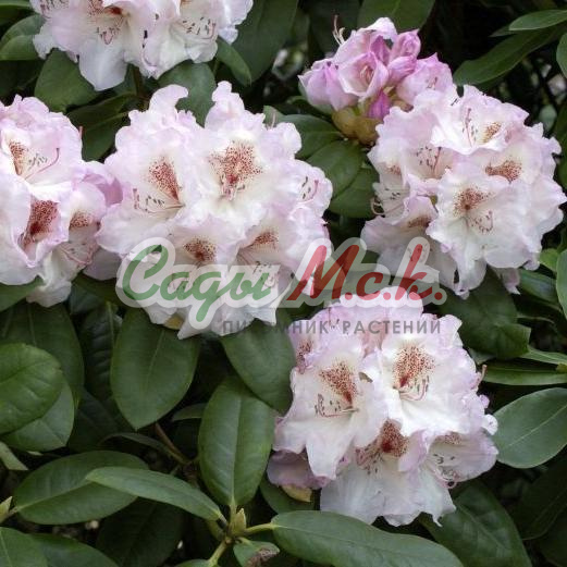 Родендрон гибридный Симона. Куст высотой 120 см. Цветки кремово-розовые с бордовым пятнышком, лепестки с волнистым краем. цветет в начале мая. Зимостойкость до -18°С. Местоположение: полутень, тень. Не так давно рододендрон считался исключительно южным растением. Ситуация изменилась с появлением гибридных морозостойких сортов. Эти высокодекоративные кустарники уже стали популярны среди отечественных цветоводов.