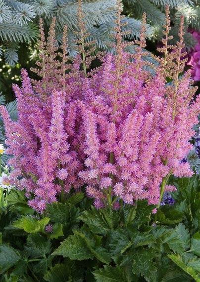 Саженцы астильбы Visions in Pink преображают тенистые сады, наполняя их яркими красками своих удивительно изящных розовых метелок. Ромбовидные плотные соцветия очень красиво выглядят на фоне густой синевато-зеленой листвы. Особого декоративного эффекта можно достичь при множественных посадках. Если обрезать отцветшие метелки, то вполне можно наблюдать повторное цветение этой астильбы.