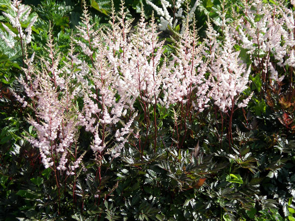 Саженцы астильбы Brоnzlаub обязательно понравятся ценителям восточного подхода в декорировании, поскольку растениям этого японского сорта удается одинаково торжественного выглядеть не только во время цветения, но также до и после него. Этот эффект достигается во многом благодаря роскошной раскраске листьев: перистые темно-зеленые листья очень эффектно дополняются красными корешками. Светло-розовые соцветия являются достаточно плотными и обладают характерным приятным ароматом.