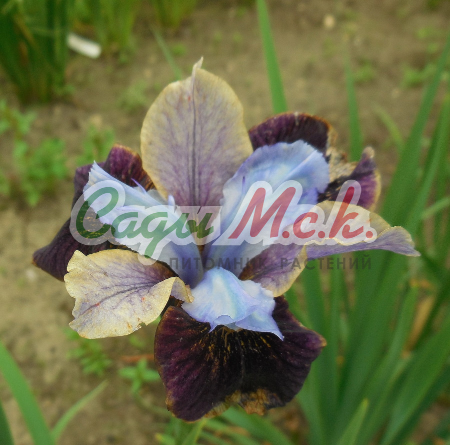 Рассада ириса Acoma относится к высоким бородатым ирисам, известным как пликата, т.е. в которых яркий рисунок располагается на более светлом фоне. Это однократно цветущий ирис, на каждом стебле которого развивается от 5 до 6 бутонов. Нижние доли (фолы) имеют светлый фон цвета слоновой кости и фиолетовые края, мягко переходящие друг в друга. Верхние доли (стандарты) – светло-светло-голубые, вертикально подняты вверх. Бородка – желтая, малозаметная. Верхние и нижние доли слегка гофрированные. Цветение среднее.
