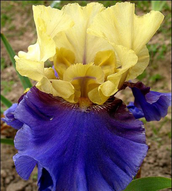 Ирис Jurassic Park отличается канареечно-желтыми стандартами. <br>Фолы сине-фиолетовые с не большой желтой каймой. Огромный, гофрированный. Высота цветоноса 90 см.