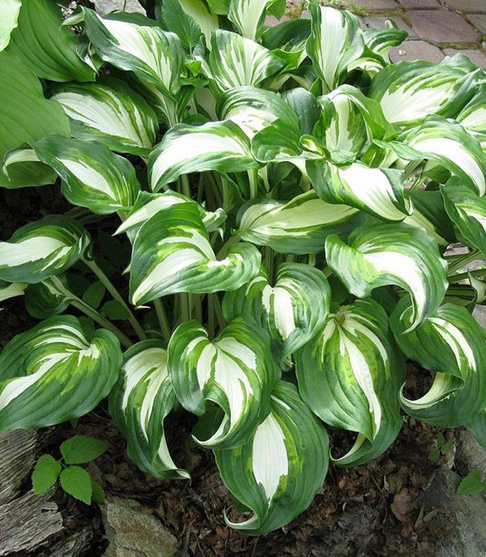 Хоста Univiltata - старый и популярный сорт. Высота 35-45 см. Листья овальные с удлинённым завивающимся кончиком. Посредине зелёного листа неравномерная бело-кремовая полоса. Цветки лавандовые на светло-бежевых цветоносах. После цветения молодые появляющиеся листья имеют в ценральной белой зоне зелёную штриховку. Нарастает быстро. Предпочитает тень, полутень.