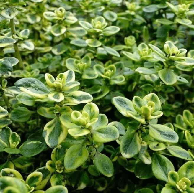 Тимьян (Чабрец) лимоннопахнущий Лимон (Thymus citriodorus) используется не только для декоративного оформления садового участка, но и для улучшения вкуса блюд. Зеленые части растения применяют в кулинарии для ароматизации напитков, приготовления первых блюд, блюд из мяса и рыбы. Листья имеют красивый зеленый окрас с каймой бежевого цвета по краям. Тимьян (Чабрец) лимоннопахнущий Лимон обладает отчетливо выраженным лимонным ароматом. Цветение приходится на июнь — июль. Цветки мелкие, обильные, бледно-розового оттенка. Высота растения – всего 15-20 см. Высаживать тимьян лимоннопахнущий Lemon следует на дренированную, нейтральную или слабощелочную, плодородную почву на хорошо освещенные места.