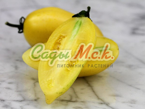 Уникальная кремово-белая окраска плодов этого позднего среднерослого сорта вызывает интерес, как у садоводов, так и у кулинаров. Растение высотой 140-150 см, в кисти формирует по 3-5 плоскоокруглых многокамерных плодов массой 200-250 г. Рекомендуется для выращивания в открытом (с подвязкой к кольям) и защищенном грунте. Нежная окраска томата выгодно оттеняет другие овощи в консервированных салатах, поэтому гурманы так любят использовать белые томаты для приготовления ассорти с капустой и огурцами. Яркий акцент и приятный вкус закуске добавят традиционные русские ягоды — клюква и брусника. Посев на рассаду в марте-апреле на глубину 1-2 см. Пикировка в фазе 2-3 настоящих листьев. Посадка рассады в теплицу в апреле-мае, в грунт - в июне. После высадки в открытый грунт растения подвязывают и пасынкуют. Схема посадки: 40x60 см.