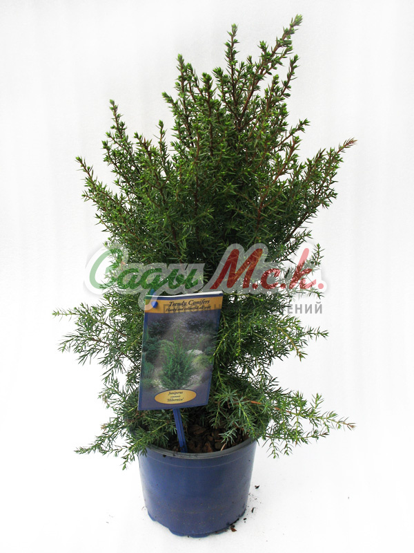 Можжевельник обыкновенный Хиберника - изящный кустарник с узкой колонновидной кроной. Диаметр кроны взрослого растения: 1 м Высота взрослого растения: 3.5 м Форма: Крона колонновидная, густая. Хвоя/Листва: Игольчатая, заостренная, но не колючая, сизовато-зеленая. Требования: Предпочитает солнечные места. К почве и влаге нетребователен. Морозостоек.