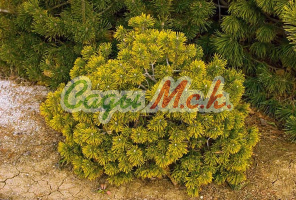 Сосна горная Carstens Wintergold - карликовый хвойный кустарник с плотной, шаровидной, компактной кроной и декоративной хвоей. Растет очень медленно (6-7 см в год), достигает 0,7 метра в высоту и 1,2 м в диаметре. Хвоя короткая, жесткая, блестящая. Летом хвоя темно-зеленая, осенью желтеет и становится золотисто-желтой с медным оттенком.