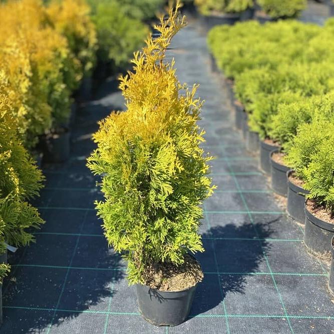 Елка живая новогодняя Туя Янтарь в горшке (30-40 см, C3)
